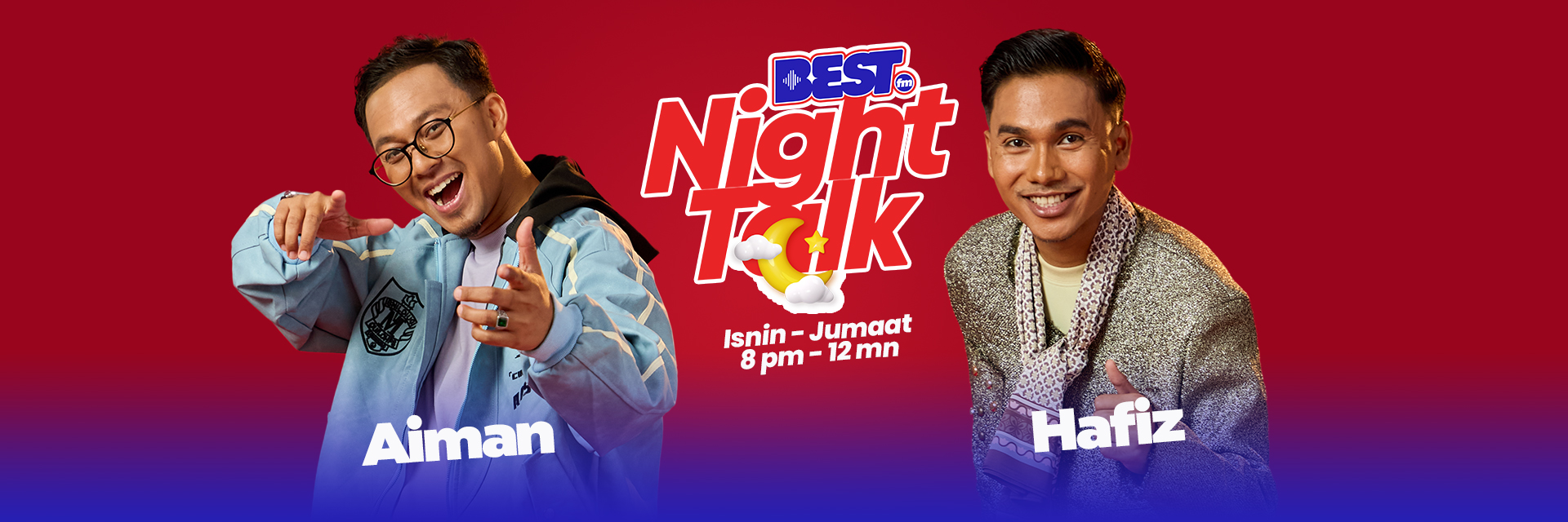 Meriahkan malam anda bersama penyampai Best Night Talk, Aiman setiap Isnin hingga Jumaat jam 8 malam hingga 12 tengahmalam